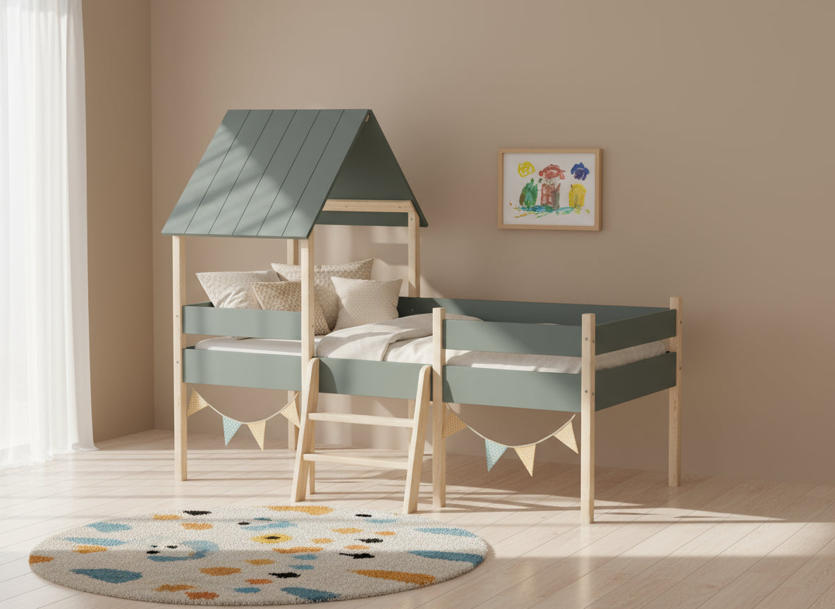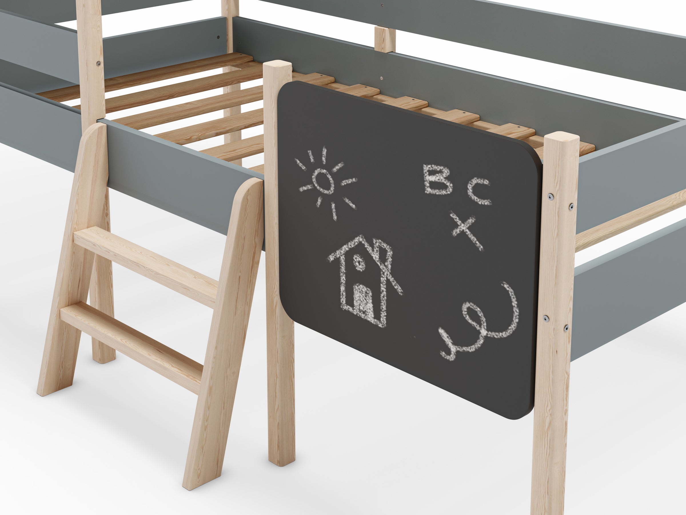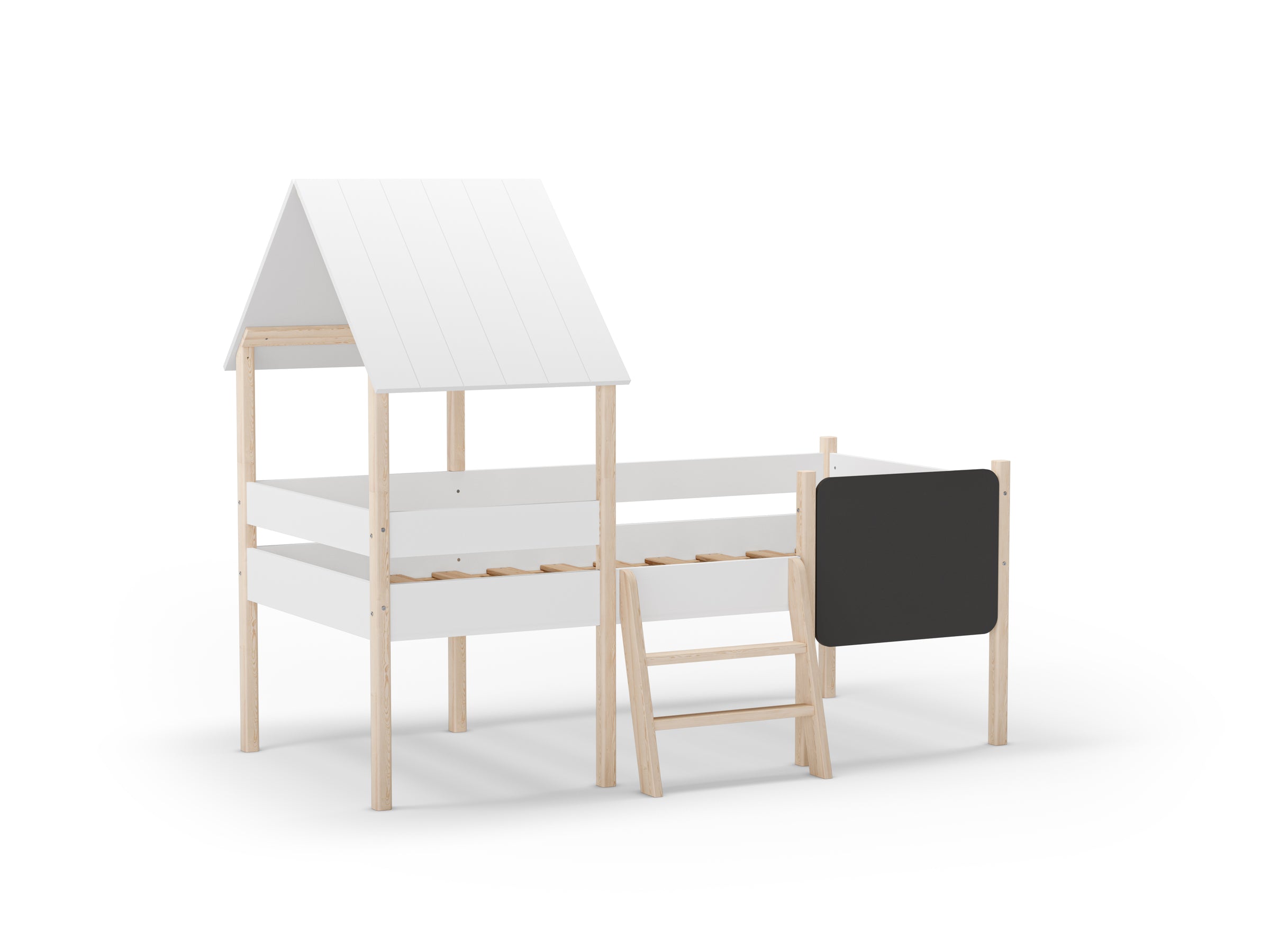 Estructura de cama diseñada para colchonetas de 90 x 190 cm, elaborada en materiales de calidad como DM y pino macizo.