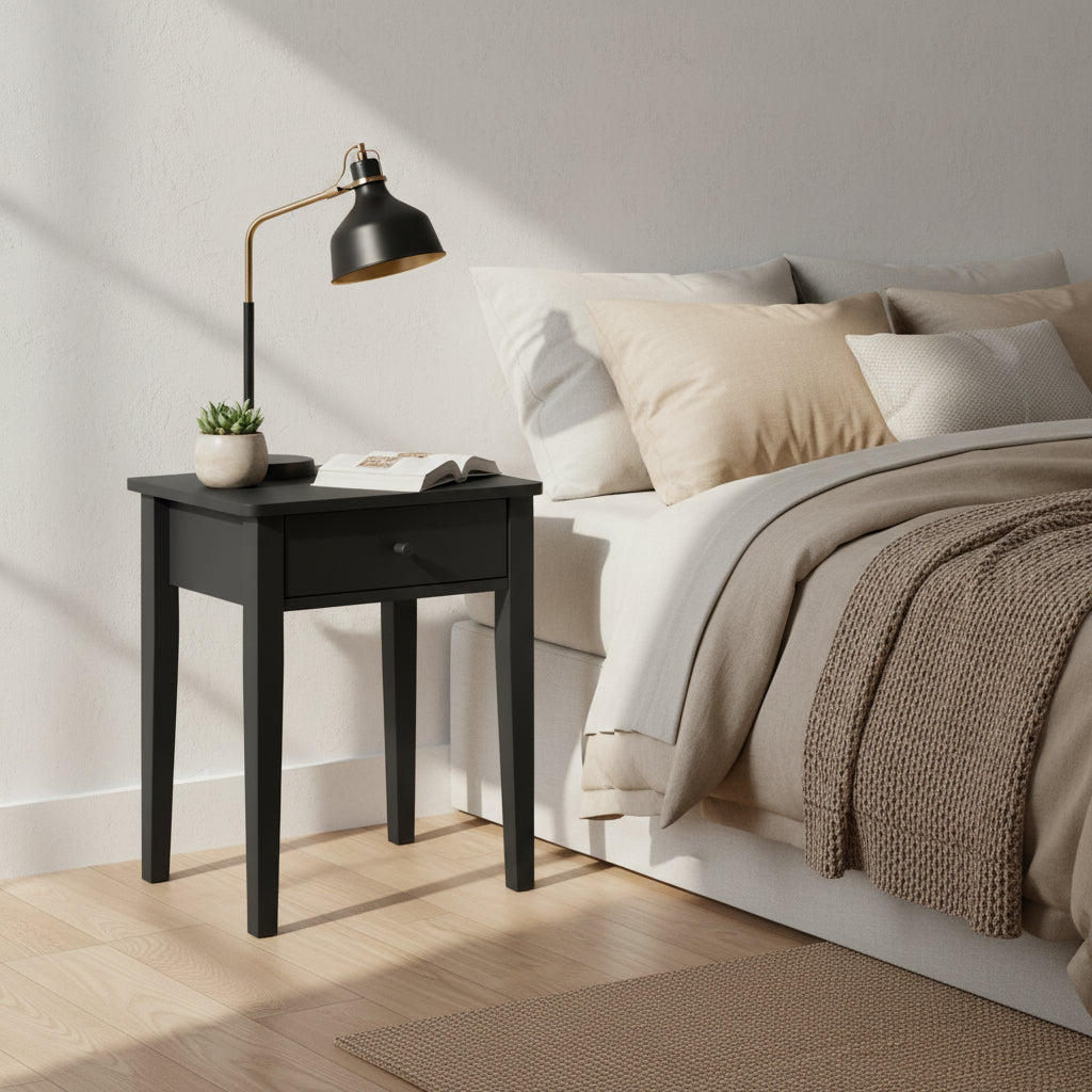 Fabricada en DM y pino de calidad, esta mesita compacta se adapta perfectamente a cualquier espacio.