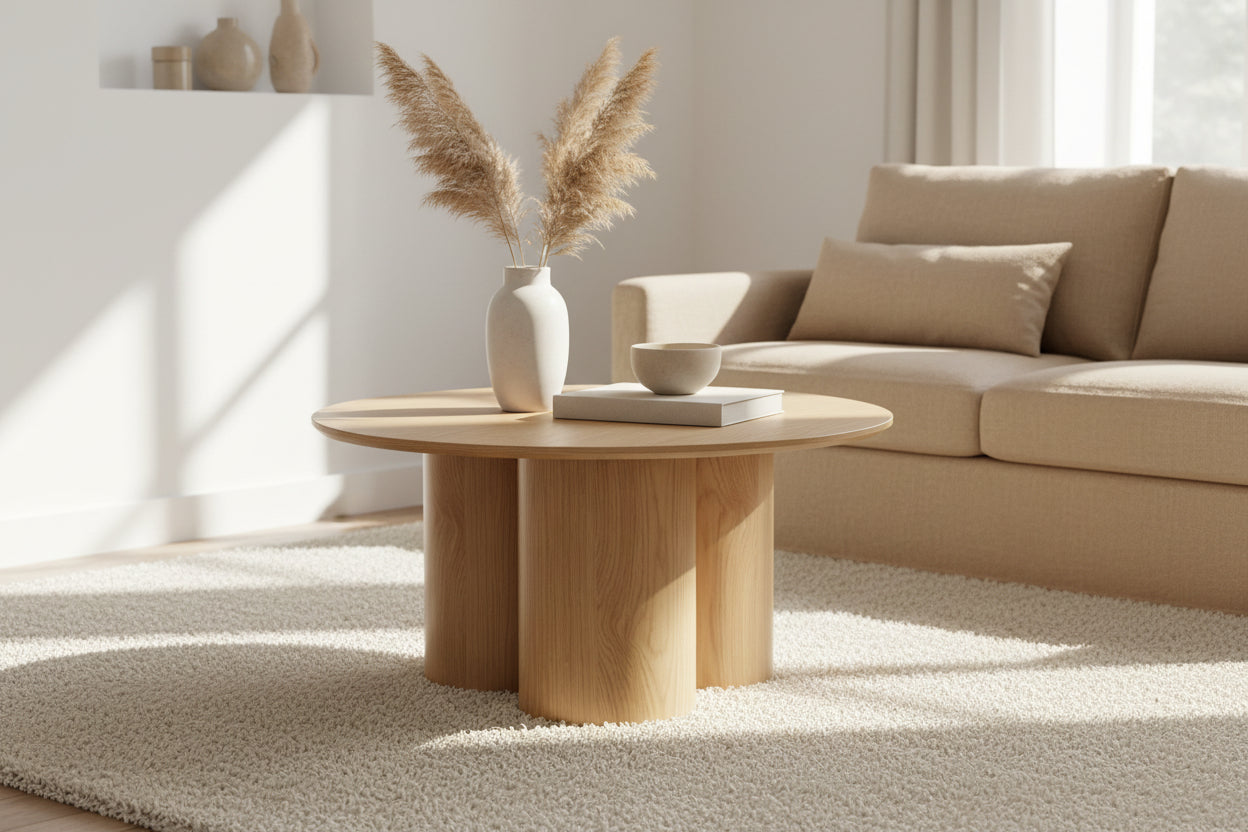 Mesa de centro Arvia con estructura en DM y acabado en chapa de roble.