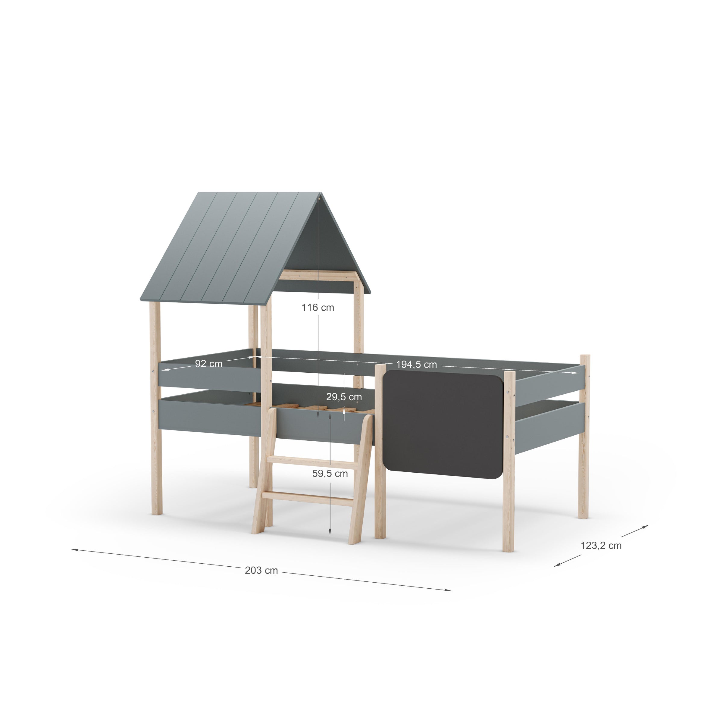Estructura de cama diseñada para colchonetas de 90 x 190 cm, elaborada en materiales de calidad como DM y pino macizo.