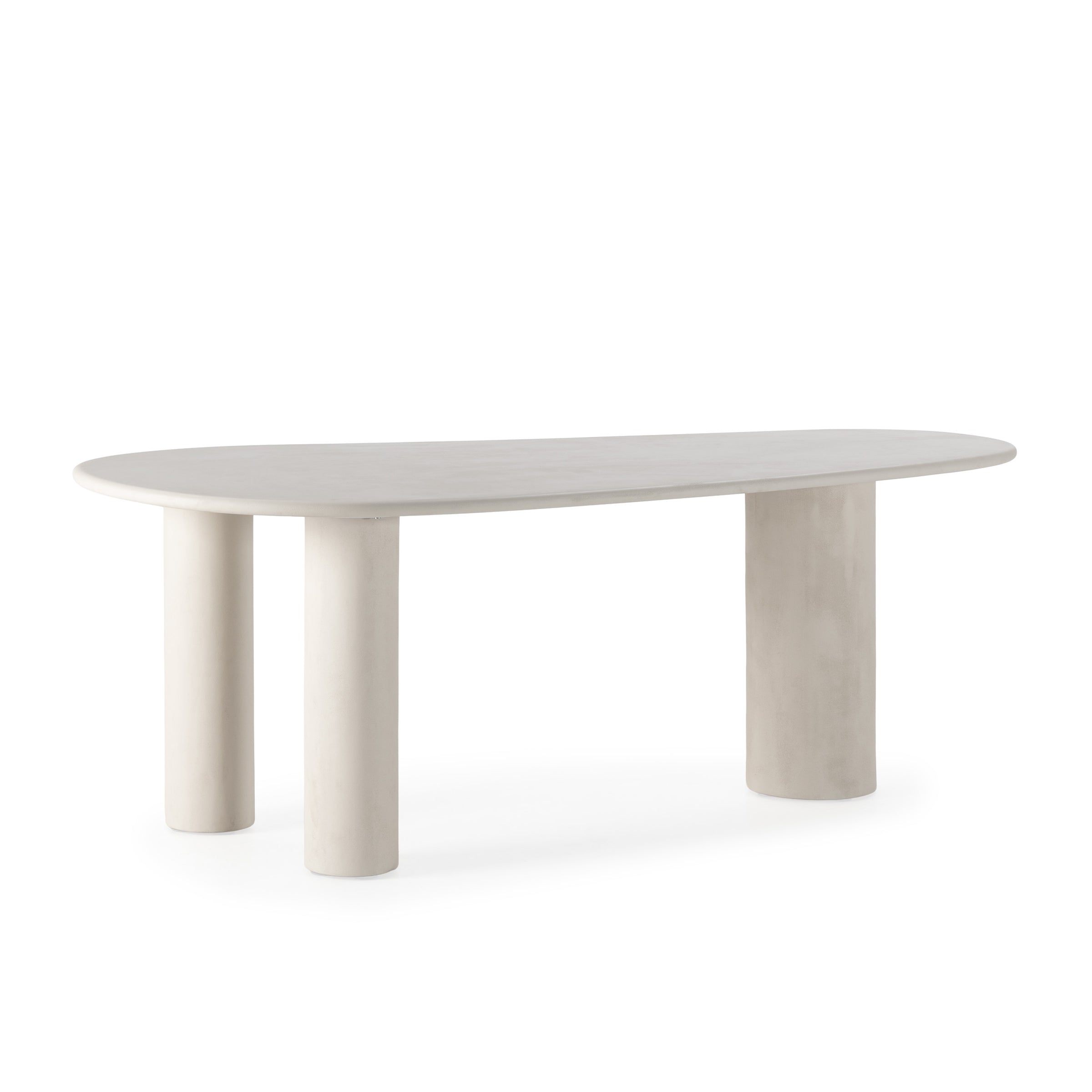 Elegante mesa de comedor con acabado en resina que imita cemento, proporcionando un aspecto industrial y contemporáneo.