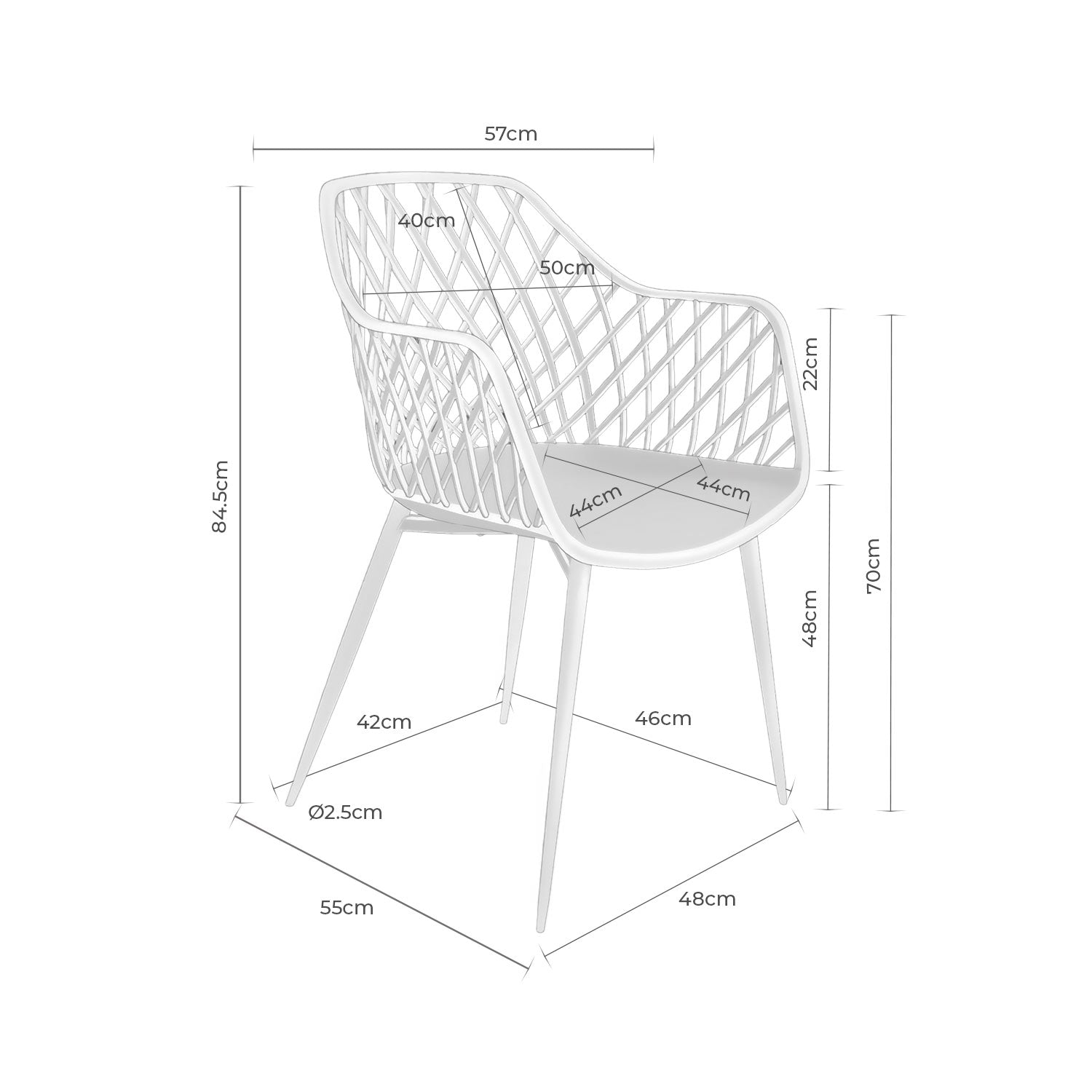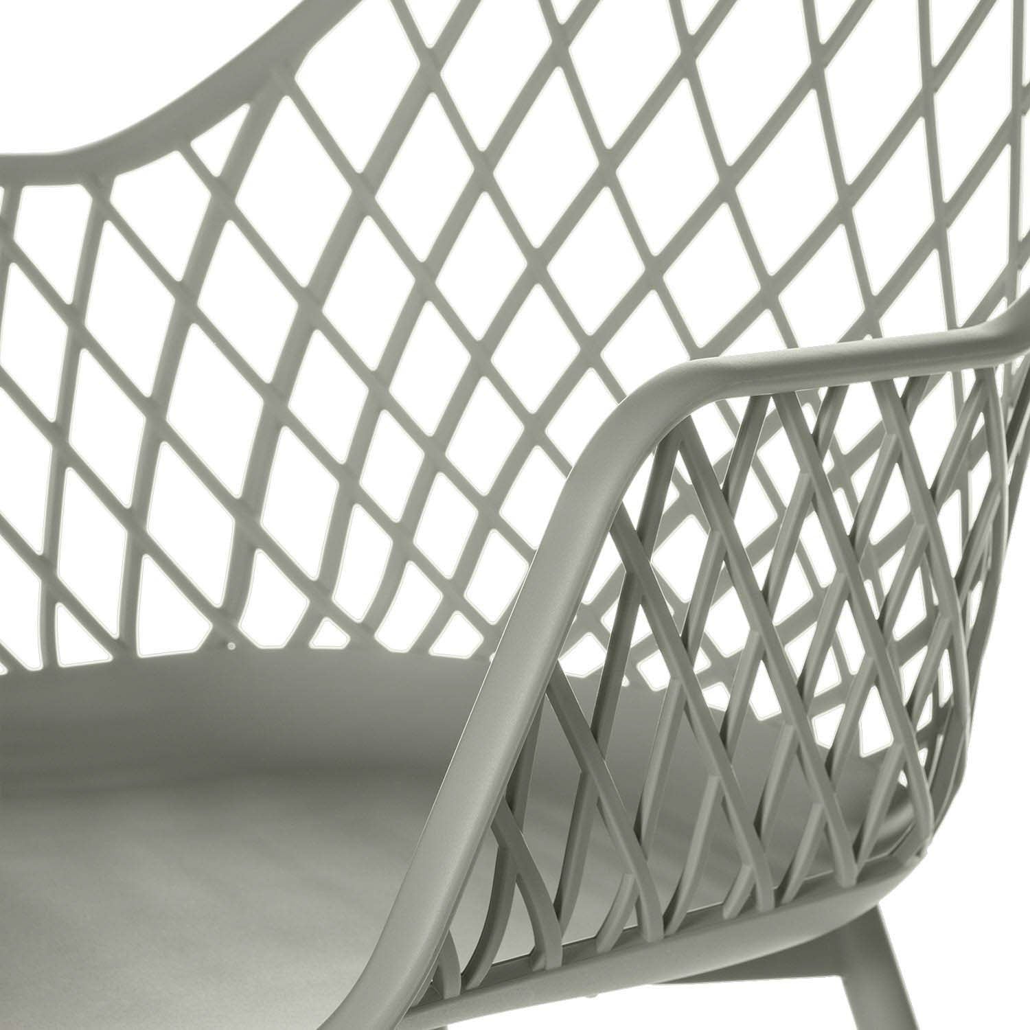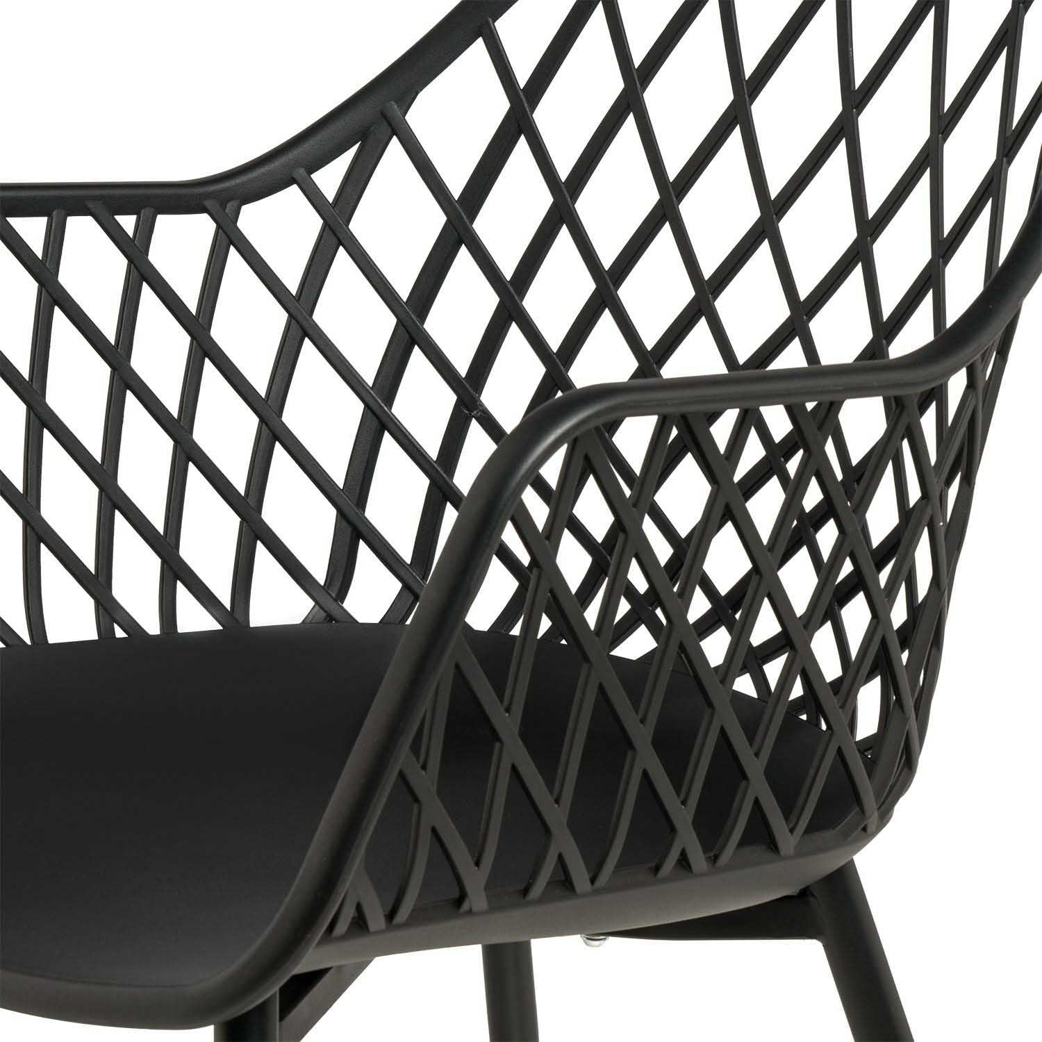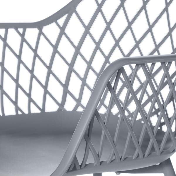 Su respaldo y brazos entrelazados en forma de rejilla crean un patrón geométrico que añade un toque distintivo a cualquier espacio.