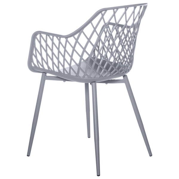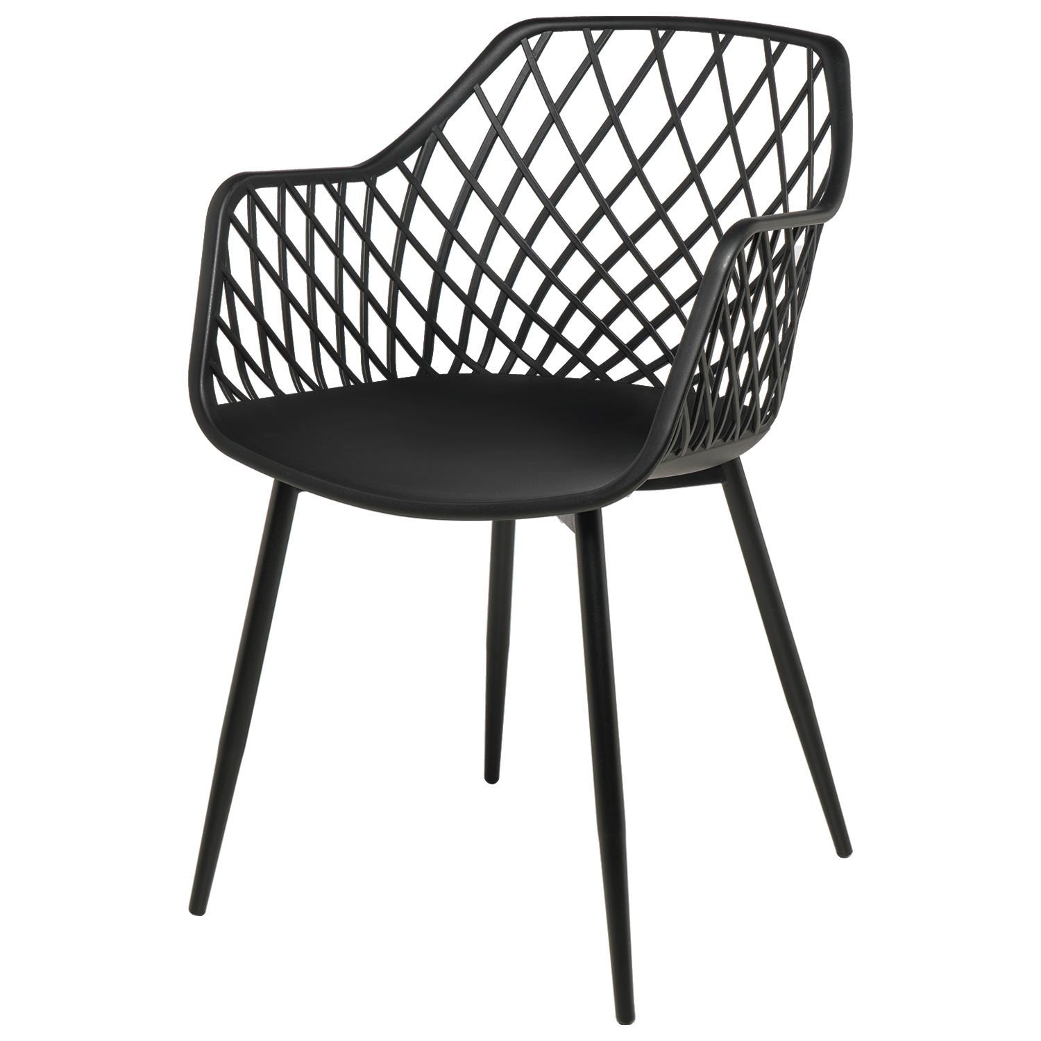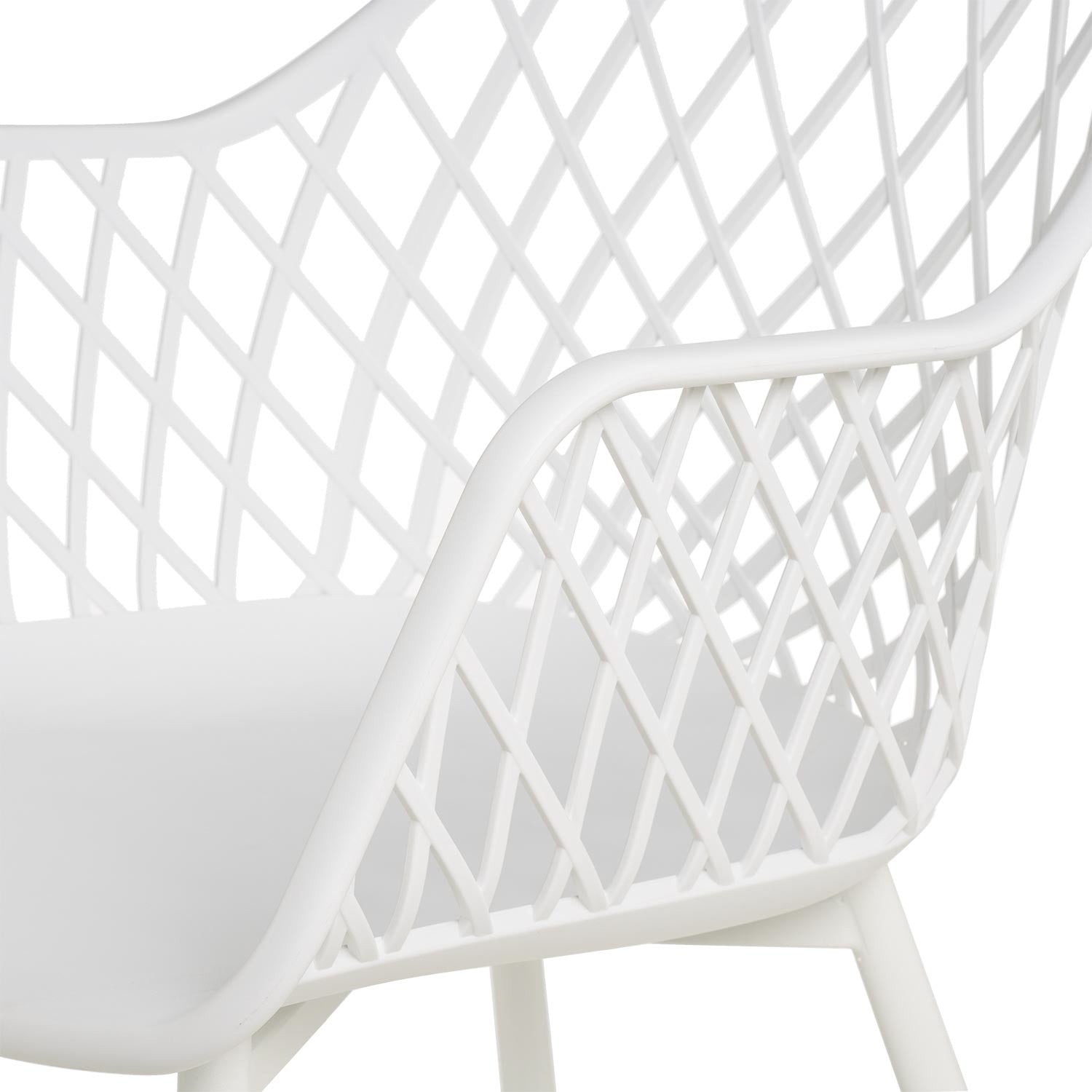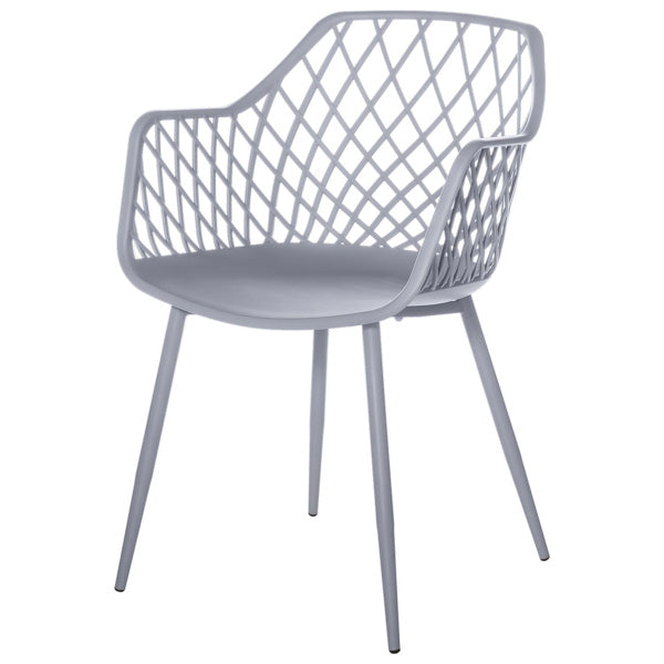 Su respaldo y brazos entrelazados en forma de rejilla crean un patrón geométrico que añade un toque distintivo a cualquier espacio.