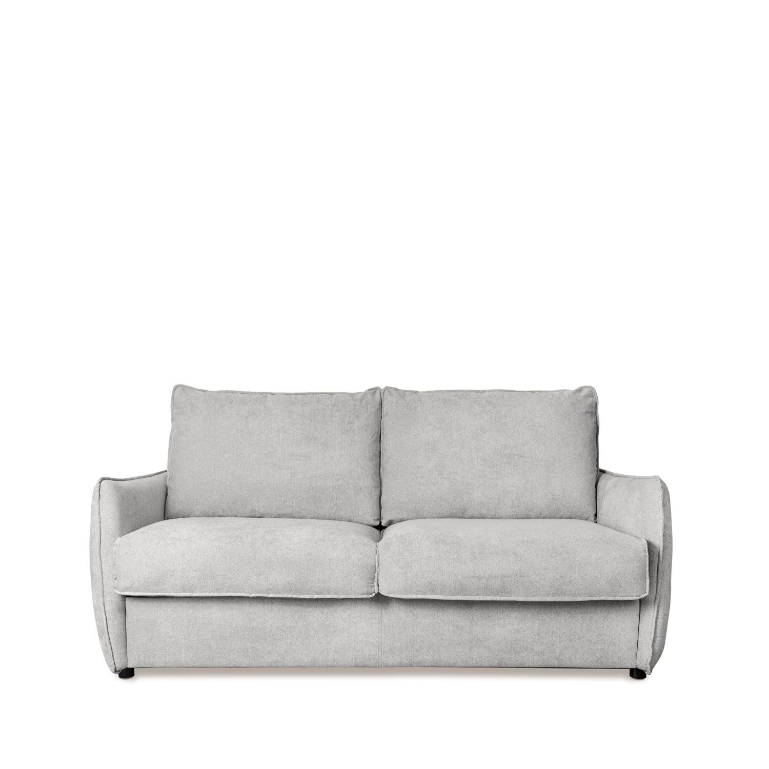 Los cojines mullidos y el asiento profundo invitan al descanso, mientras sus líneas envolventes y brazos curvados aportan un aire atemporal que se adapta a estilos muy diversos. La base metálica del somier con correas de sujeción, asegura durabilidad y confort en el uso diario, tanto como sofá como cama auxiliar.