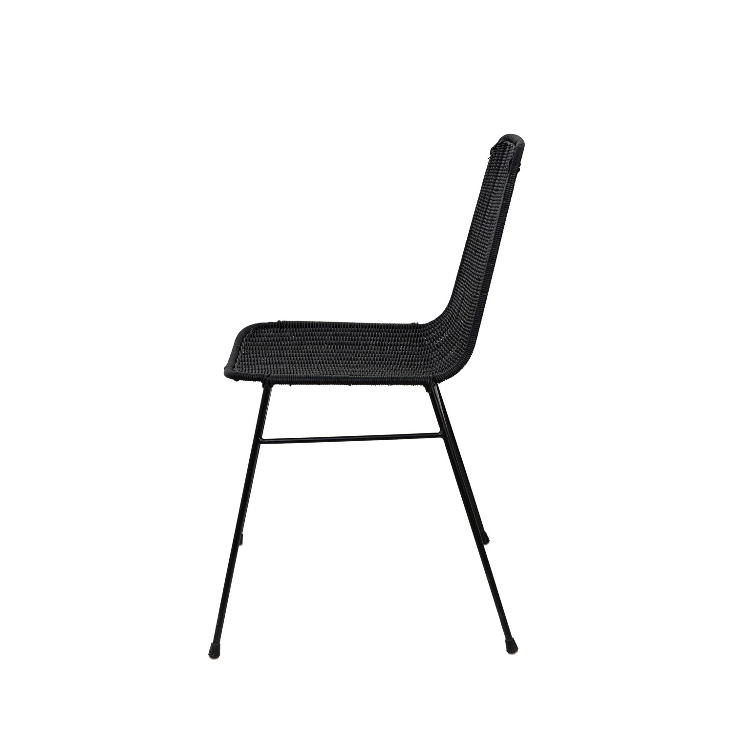 La silla valle se distingue por su elegancia y diseño sofisticado, fusionando a la perfección la calidez del ratán natural con la solidez de unas estilizadas patas de hierro en color blanco.