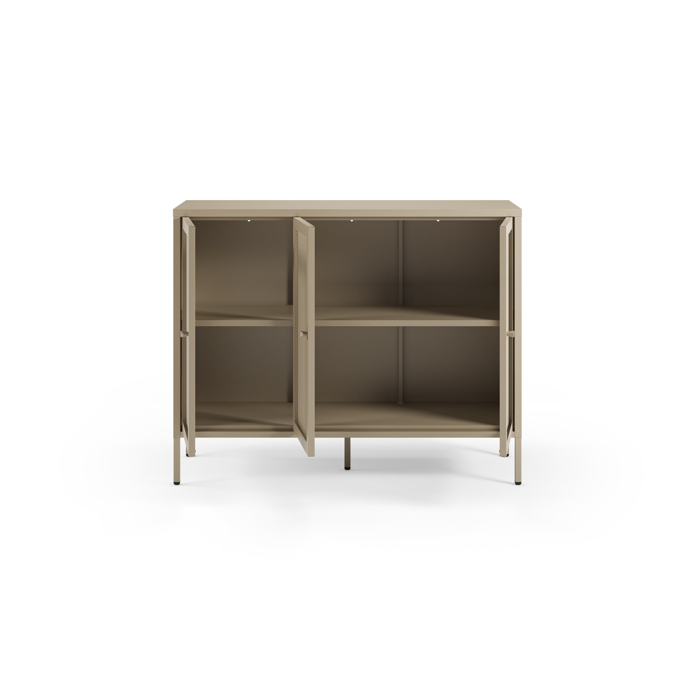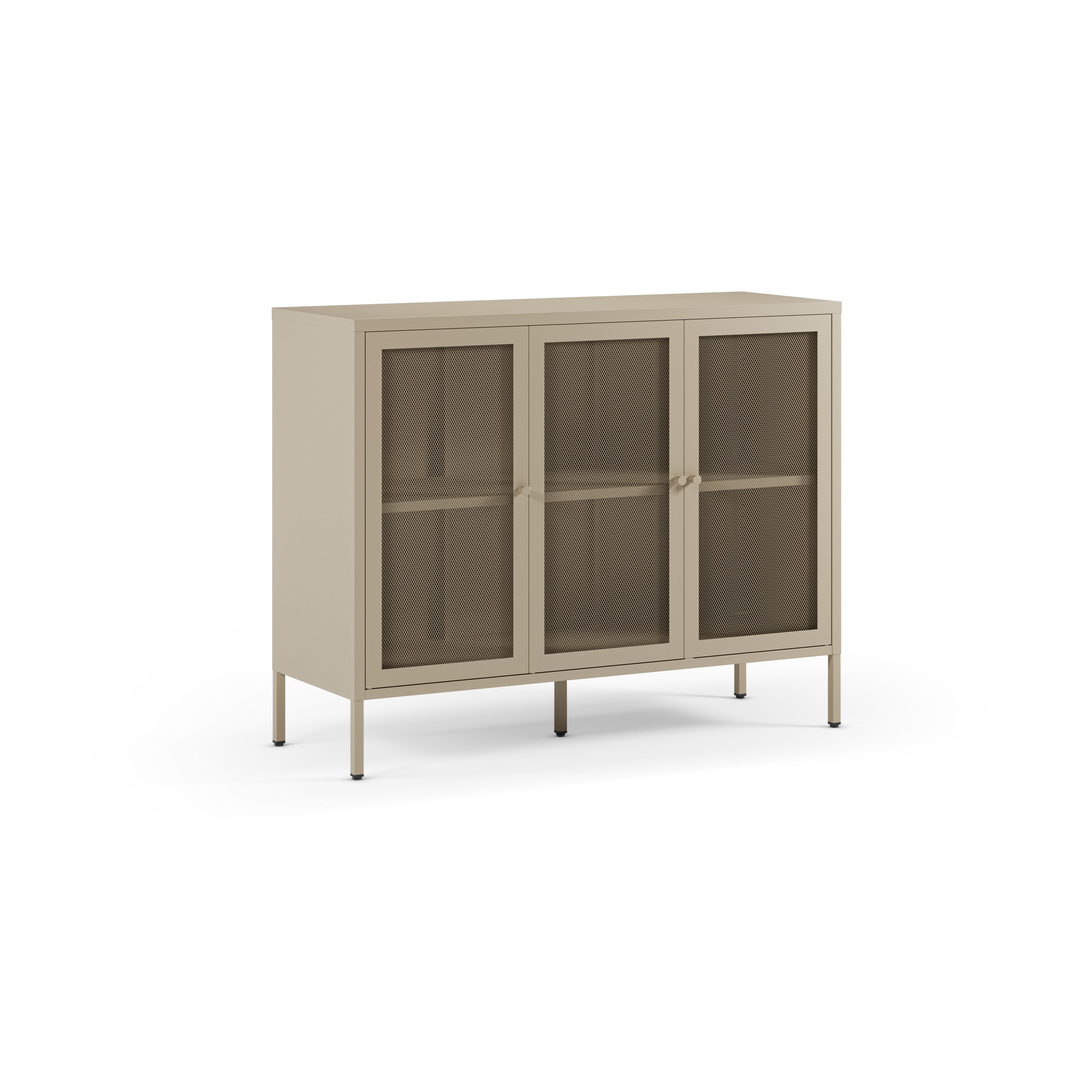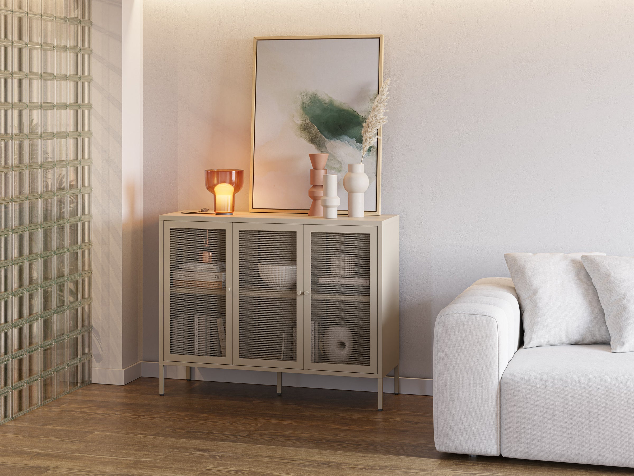 Aparador 3 puertas, con estructura de metal. Puertas de rejilla tipo gallinero metálicas.