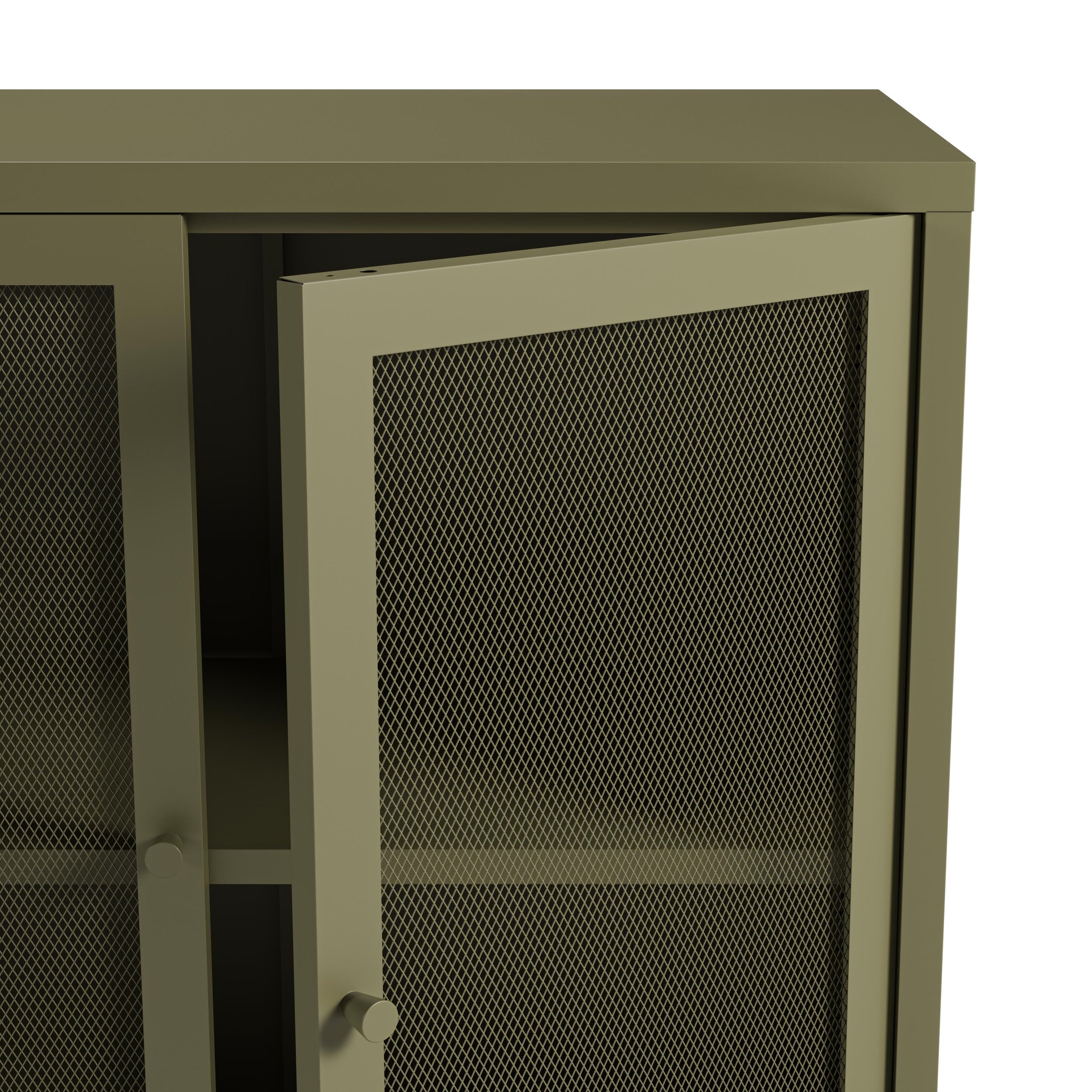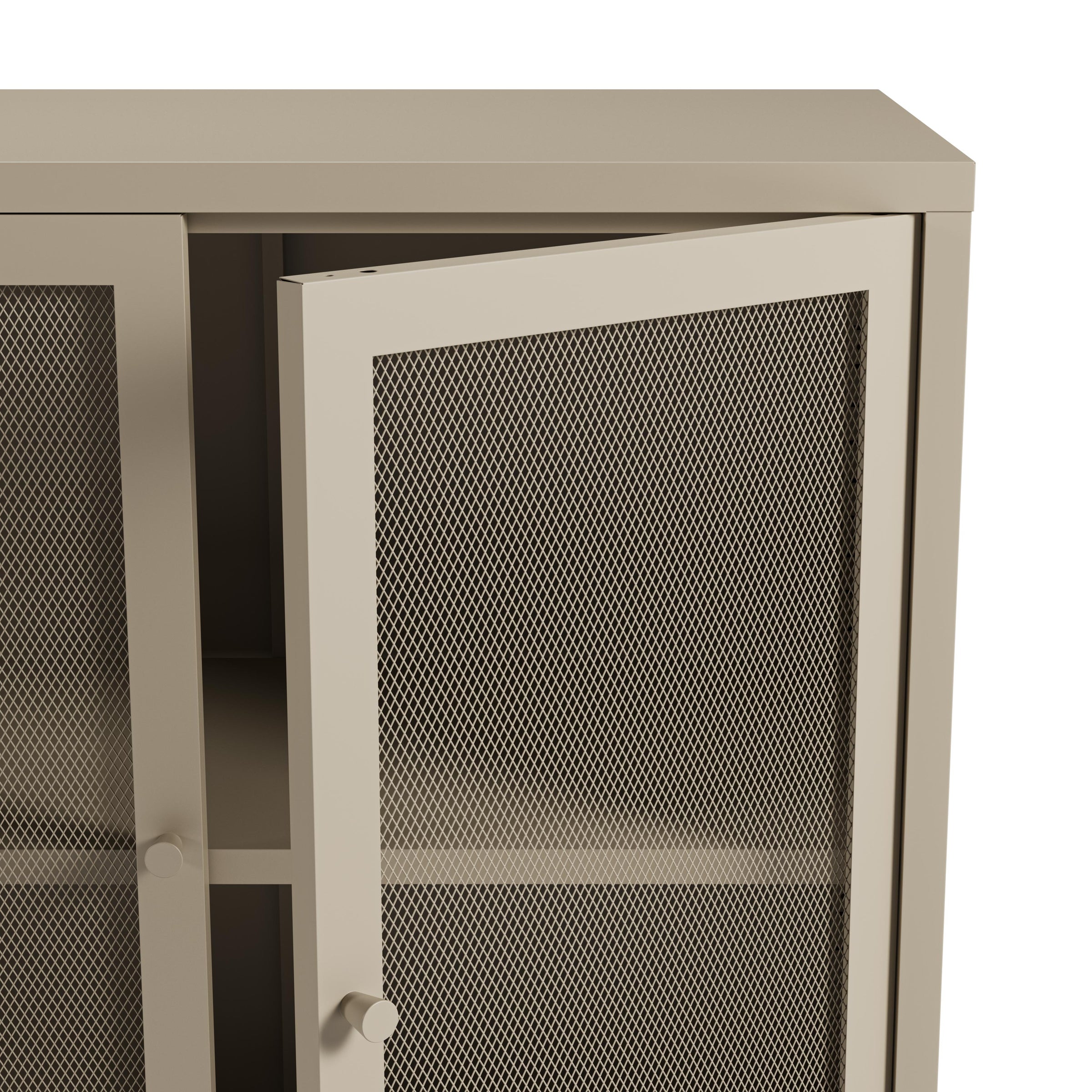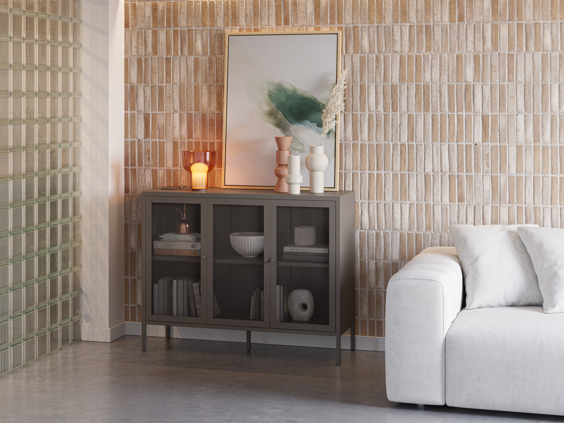 Aparador 3 puertas, con estructura de metal. Puertas de rejilla tipo gallinero metálicas.